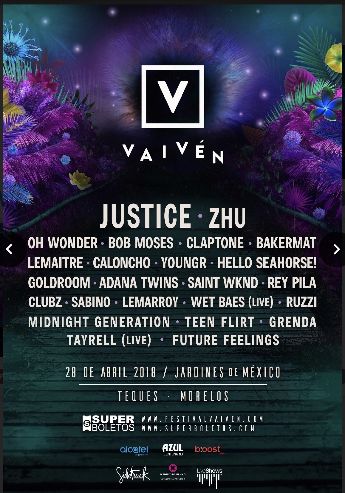 FESTIVAL VAIVÉN ESTÁ DE REGRESO ESTE 2018 CON MÁS DE 25 SHOWS INTERNACIONALES Y NACIONALES. JUSTICE, ZHU, OH WONDER, CLAPTONE, YOUNGR, CALONCHO, YOUNGR, HELLO SEAHORSE!, ADANA TWINS, SAINT WKND, REY PILA, Y MÁS. UN FESTIVAL CON GRAN VARIEDAD DE PROPUESTAS ARTÍSTICAS, EXPRESIONES CULTURALES, PAZ, CONCIENCIA SOCIAL Y ECOLOGÍA. 28 DE ABRIL, JARDINES DE MÉXICO, MORELOS. […]