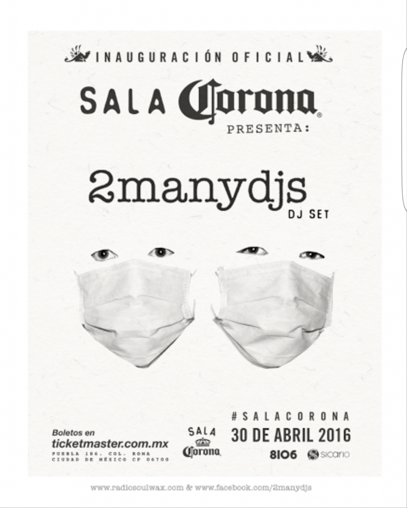 Lanzamiento “Sala Corona” con 2ManyDjs 30 Abril CDMX